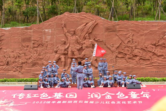 “十月里来秋风凉,中央红军远征忙,星夜渡过雩都河,古陂新田打胜仗……”5月29日,信丰县新田镇百石村百石“长征第一仗”核心展示园举办“百石首届少儿红色文化艺术节”活动。来自当地百石小学和幼儿园的孩子们用歌舞传递童趣,用童心演绎快乐,提前欢庆“六一”儿童节。