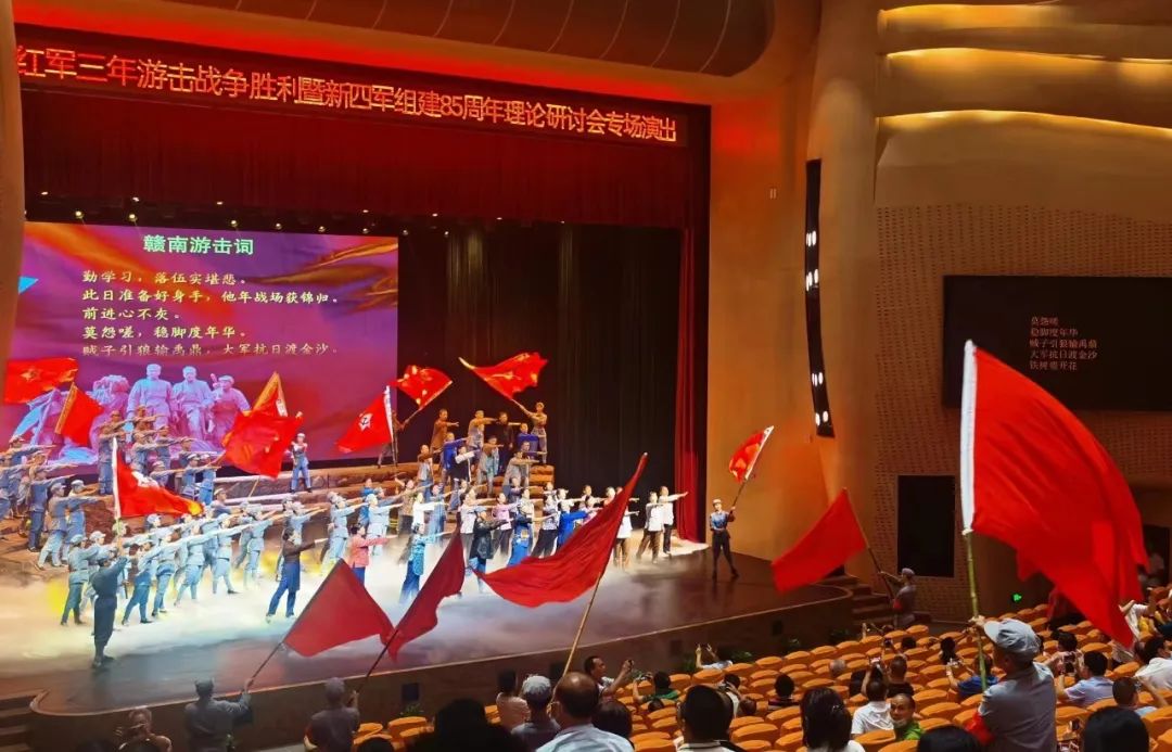 8月31日晚,信丰县举办南方红军三年游击战争胜利暨新四军组建85周年理论研讨会专场演出,我县原创大型情景合唱《赣南游击词》在文化公园大剧院震撼上演!这是信丰大剧院建成后的首场演出。