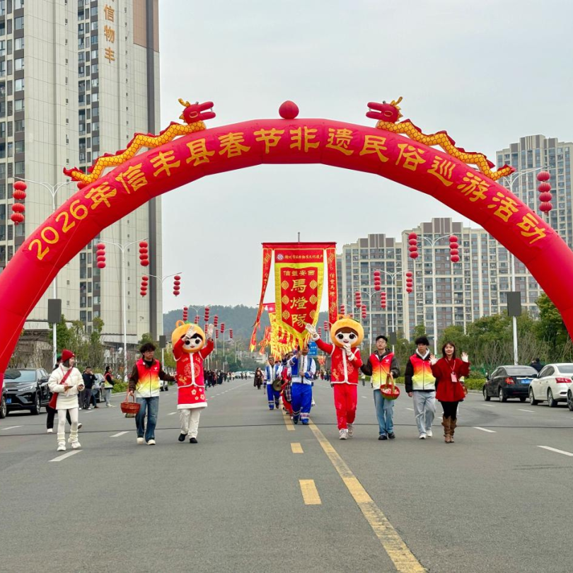 正月初三,“非遗贺新春 做客来信丰”2026年信丰春节非遗民俗巡游展演盛大启幕。25支非遗队伍组成六大方阵,沿1.2公里路线从文化公园巡游至花园湾广场,白天巡游展演、非遗集市趣味互动,夜晚香火龙狮联袂国家级非遗重磅登场,一场沉浸式客家非遗盛宴,点燃了橙乡新春最浓郁的烟火气。